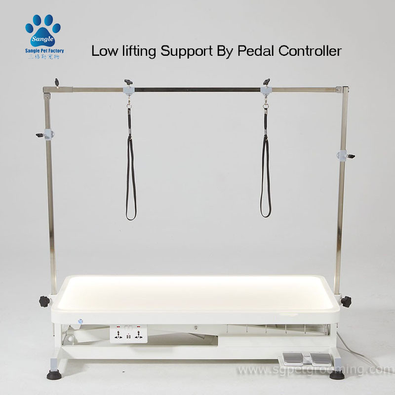 三格内嵌灯光电动升降美容桌采用优质环保材质生产,桌面安全防滑,加固耐用,适配性能强,电动升降性能稳定,深受广大宠物店主的喜爱,属于国内、国际市场的热销美容台。